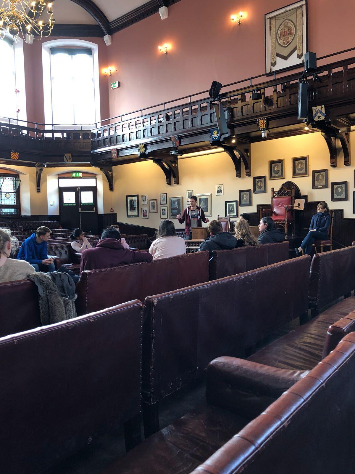 Lunch was enjoyed nearby, before all the students joined together for a debating session held in the famous Cambridge Union Society building – home to the oldest debating society in the world since 1815 (https://www.cus.org/). Our Reach Cambridge students stood and debated where many world famous orators have addressed their audience – including Winston Churchill and the current Dalai Lama. The students were trained, encouraged and prepared to debate two hot topics: Reality TV and Nuclear Weapons. After putting forward all their arguments on both sides, the rest of the students had to ‘vote with their feet’ and walk through the NOES or AYES door to indicate their stance. Everyone did an incredible job and