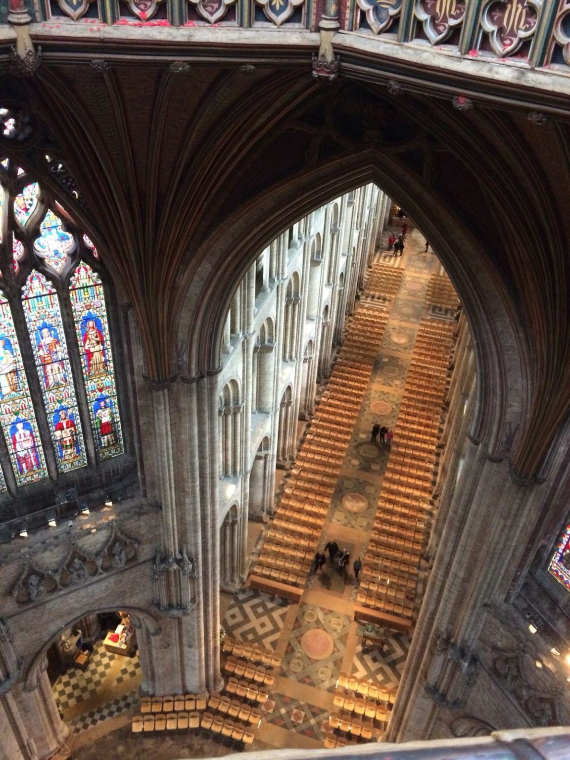 The main attraction of the town is its Cathedral, and we were lucky enough to have guided tours of the entire space. Dating back to the 11th century, Ely Cathedral is almost 1000 years old, and the students were inundated with fun facts, as we ascended through the various floors up towards the 120 feet high tower. From this vantage point, we could see far and wide into the beautiful countryside, even if the cloudy weather did hold us back from seeing all the way to Cambridge!